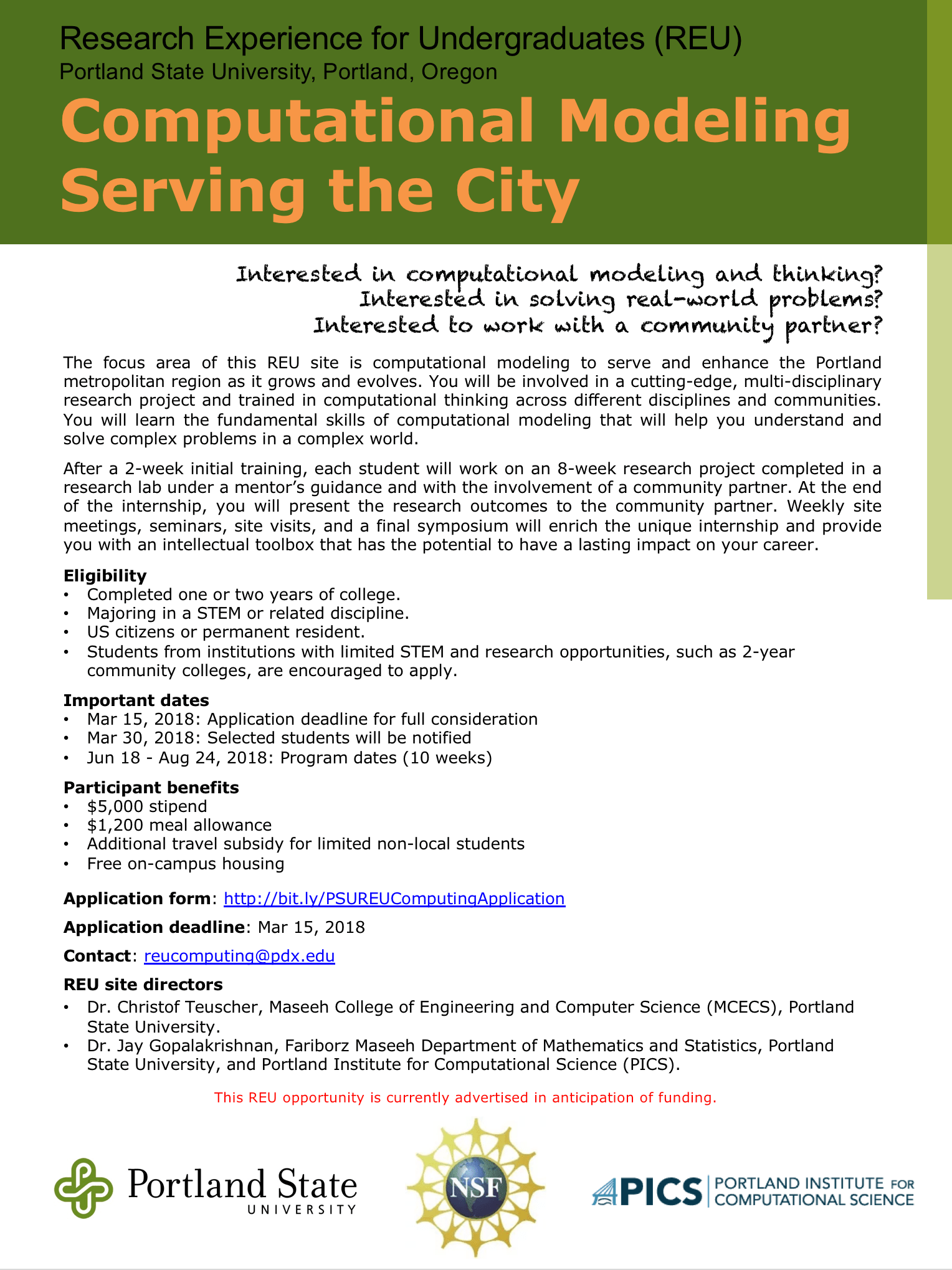Applications form: http://bit.ly/PSUREUComputingApplication